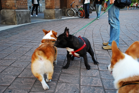 回車車的路上,我們遇到了一隻叫"胖胖"的柯基小弟,還遇到一隻叫"黑皮"的法鬥兄弟。黑皮竟想調戲本少爺!胖胖這個沒膽量沒義氣的傢伙還躲到我把拔相機底下!