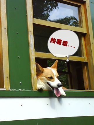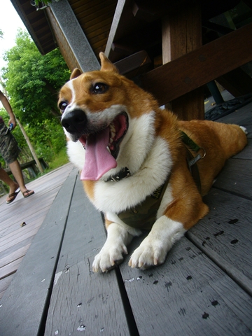 雖然林場多有樹林遮蔭,下午時分仍是相當炎熱,一行人在陰涼處稍做歇息,無相機一身輕的攝影師閒著也是閒著,餵狗像餵雞一樣~