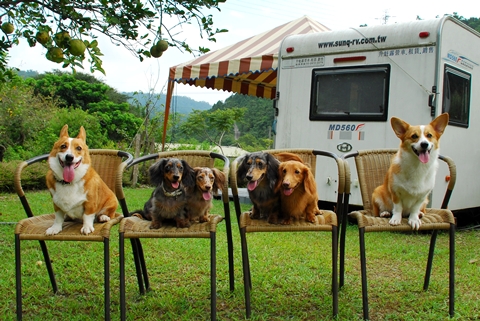等他們精力消耗得差不多,六犬關進冷氣露營車,六人前往茶藝館吃早餐。(民宿房間亦在此)
