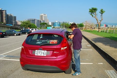 這次再也不能推辭,於是相約在台北市美堤河濱公園,除了拍攝歐巴桑特務如何執行任務之外,還要拍特務開車的樣子...(我的側面不能看啊...雙下巴無所遁形!orz)