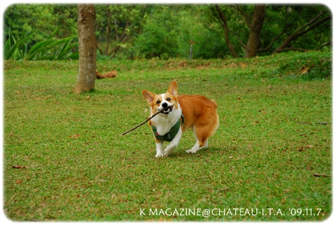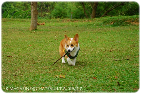 這次卡內麻忘了帶粉粉出門,隨手撿了根樹枝丟丟看