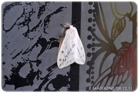在我們房門外有隻很有聖誕風的白蛾,領口還圍了一圈白毛,畫著紅色眼影