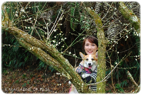 上岸後,我們往梅荷園的方向走,看到一片聖誕紅,又把兩個小朋友放上去合照