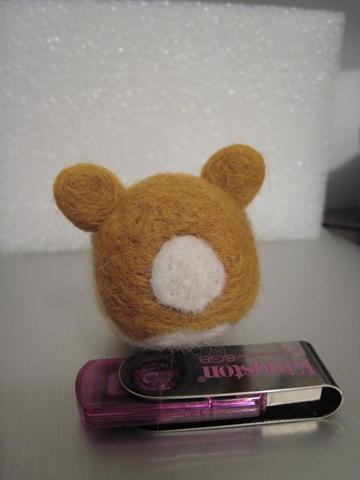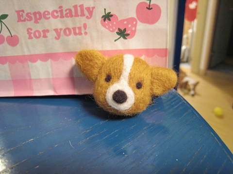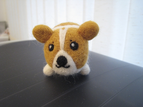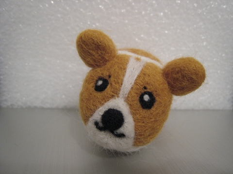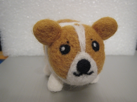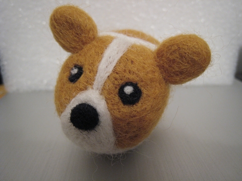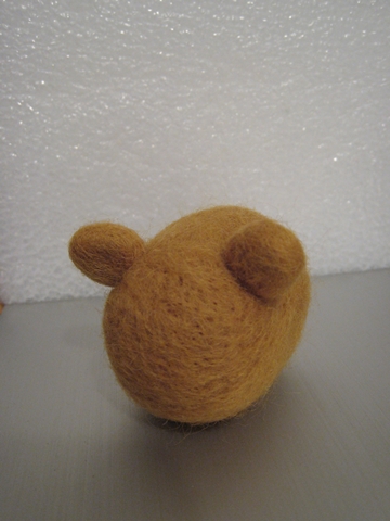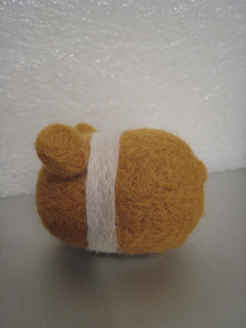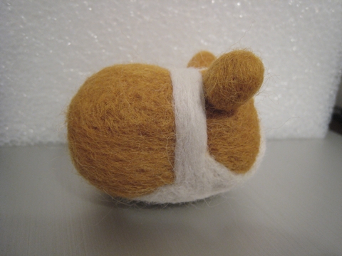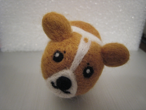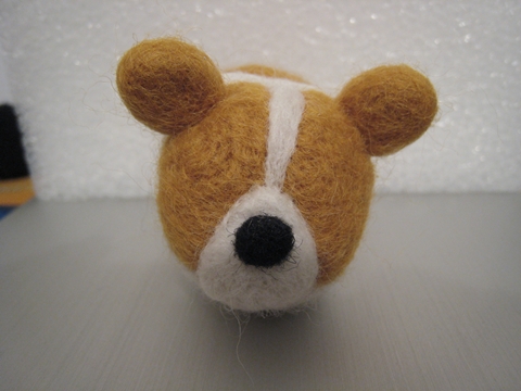 首先,用「黃金獵犬色」的羊毛(盒子上就這麼標示的)做出身體和耳朵(我也知道耳朵太圓了,不過不知為什麼就是戳不出三角型...)