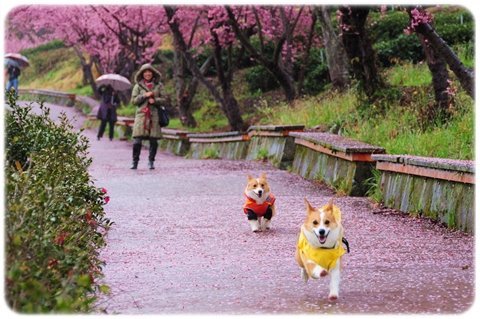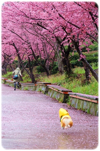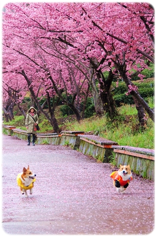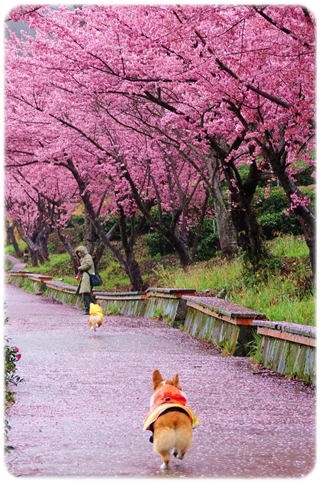 粉紅色花瓣落在階梯和溝渠中,浪漫指數破表!
