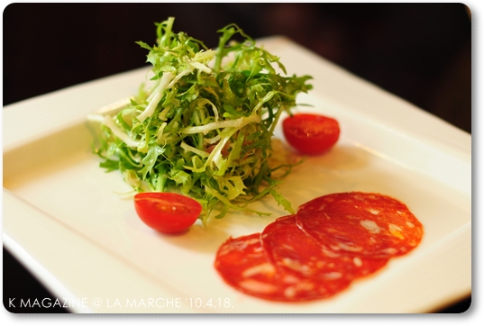 套餐中的主廚沙拉,有卡內麻最愛的義式臘腸~