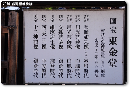 購買門票可參觀東金堂內的國寶佛像彫刻