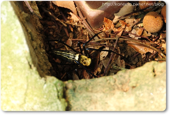 原來他竟然在聞一隻好大的人面蜘蛛!