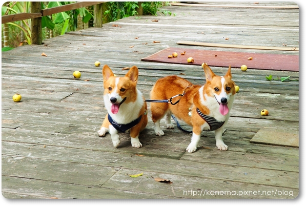 卡ㄋㄟ看到地上的芭樂馬上就想吃,摩卡卡則以為是球球...