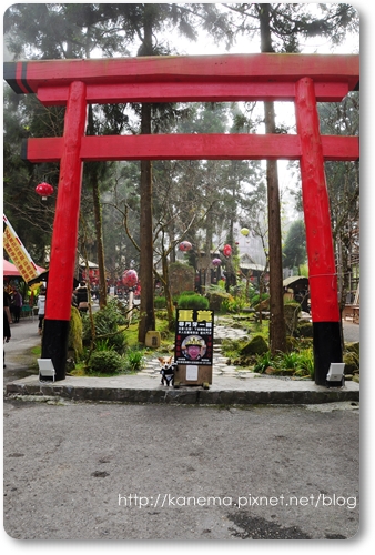 不過這個紅色大鳥居底下居然是個怪裡怪氣的告示