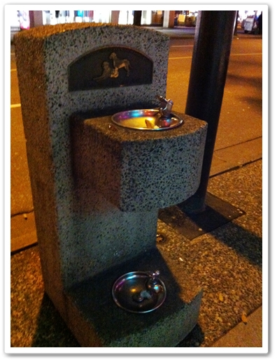 卡內麻在路口看到一個特殊的飲水機,是人、狗都可以享用的耶!可是狗狗的飲水盆裡被沒有公德心的人丟了一張紙屑...