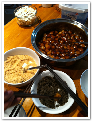 飯後甜點是糖炒粑粑,就是紅糖拌炒小湯圓,火候可是要有工夫的喔!