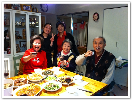 我有好幾年都沒吃到這麼正式的年夜飯了~(而且還不自量力的陪大姨爹喝高梁!XD)