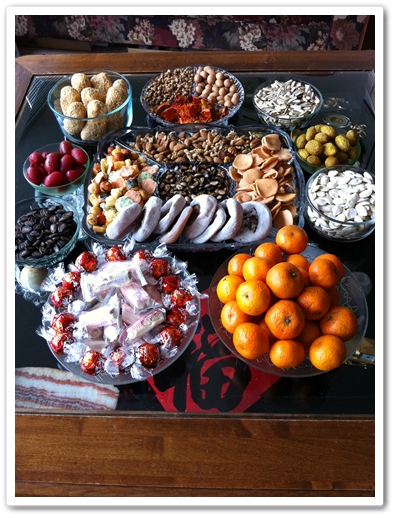 2月2日除夕夜,一到姨媽家就看到茶几上已擺滿了過年要吃的零嘴,平常沒什麼吃零食習慣的卡內麻看到這麼華麗的陣仗毫無克制力的吃個不停...