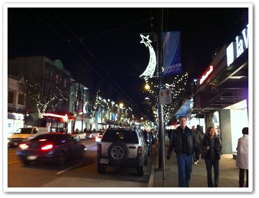 回到Downtown,離晚餐訂位時間還有一個空檔,表妹帶我們到Robson St.,是當地最熱鬧的一條街,很多名牌的旗艦店都開在這裡。