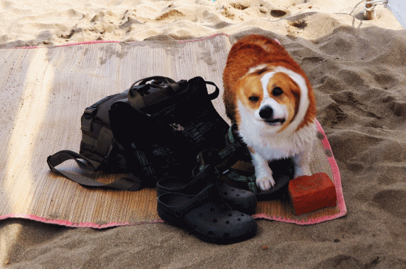 先把身上的海水通通甩到把拔瑪麻的包包上...