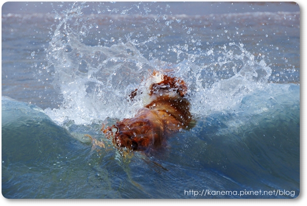 一時沒留意,被一個小浪頭偷襲成功