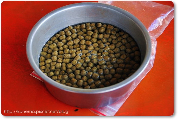 每餐飼料都要泡水十分鐘,泡成湯才讓奶皇進食