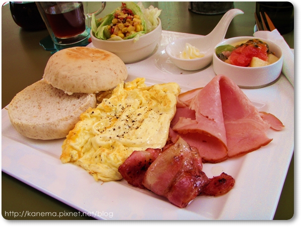 主編點了一份蛋包(蛋卷),附薯餅及吐司,蛋包水準頗高,不過對女生來說份量滿多的