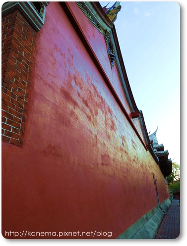 有「全台第一山牆」之稱的朱紅色山牆長逾百台尺,能與之匹敵的大概只有台南孔廟,但是沒有如此宏偉