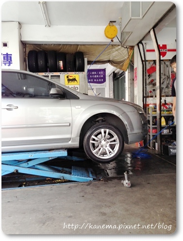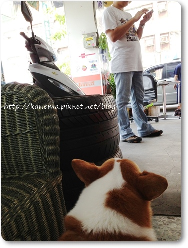 右前輪爆胎,只好帶著紅茶牛奶來輪胎行補胎
