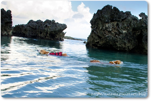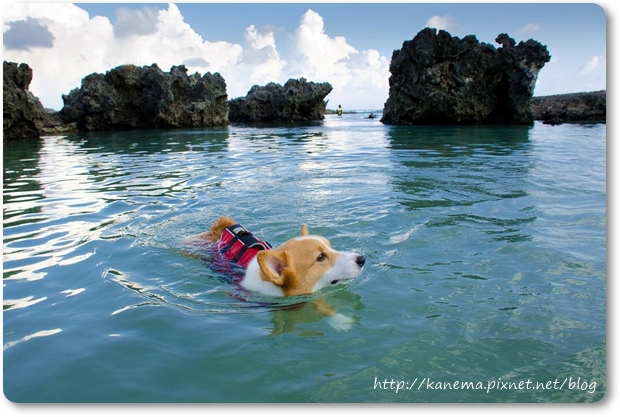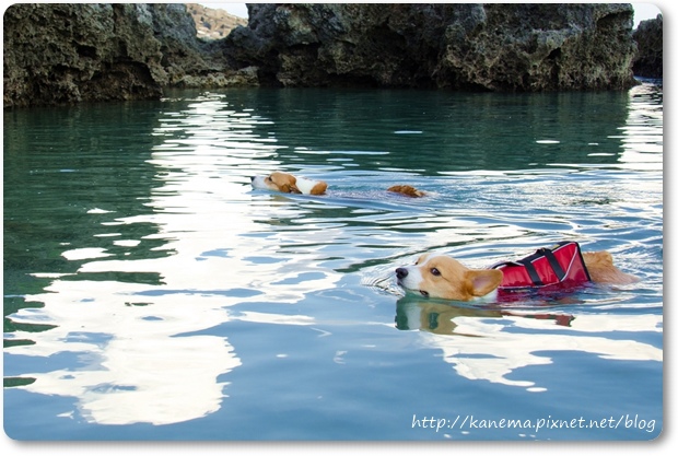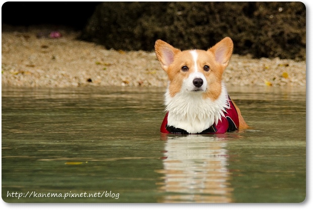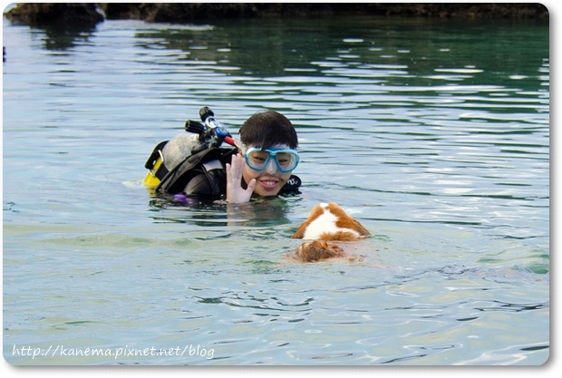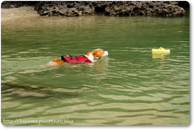 穿上救生衣的卡卡自己下水游來游去,讓摩卡拔麻很驚喜
