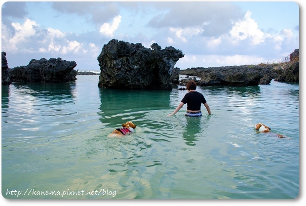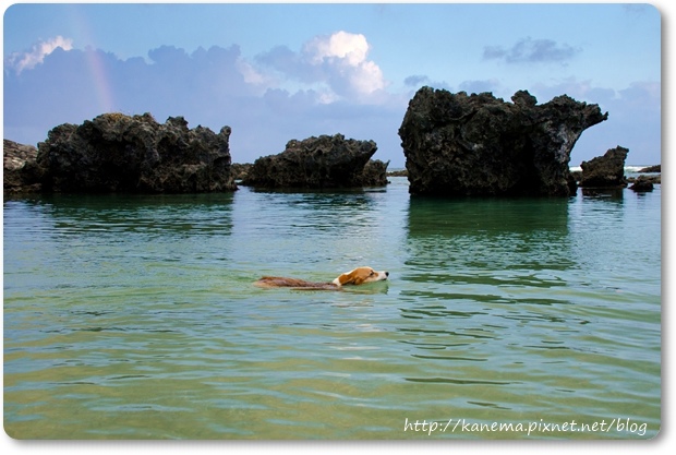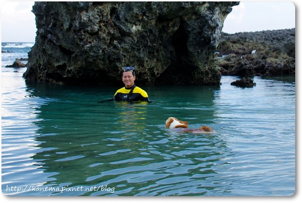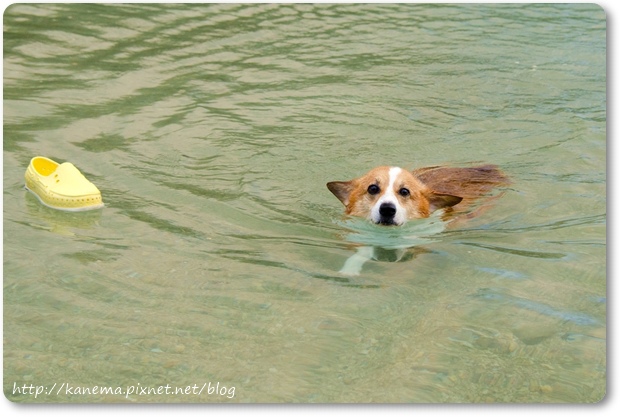 我們忘記帶水上玩具,所以有天才丟自己的膠鞋給兒子玩...